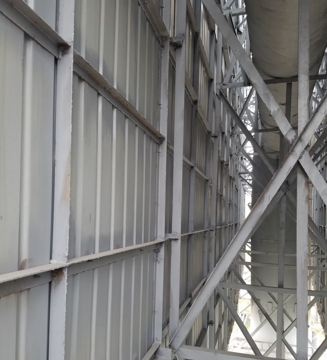 我司通过对该广告牌的原设计图纸资料及使用情况调查、结构构件工作状态检查等一系列鉴定检测工作,评定该构筑物的结构安全性。分别检测了广告牌的地基基础、钢管柱、横担梁、支撑角钢架等构件,检测地基基础是否有不均匀沉降,钢管柱是否有倾斜、开裂、变形,横担梁开裂、变形、锈蚀情况等。综合现场检查情况、检测数据,对广告牌现时的结构安全性作出评定。
